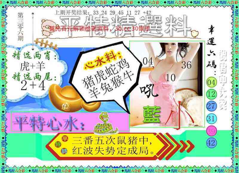 304期【解一句真言】:美人拦路虎当家,美人,解吉美生肖羊蛇马龙兔鸡 王牌看好生肖:羊蛇马龙兔鸡  |